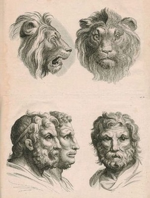 Charles Le Brun, Trois têtes d’hommes en relation avec le lion, 1619-1620, Musée du Louvre, Paris. |