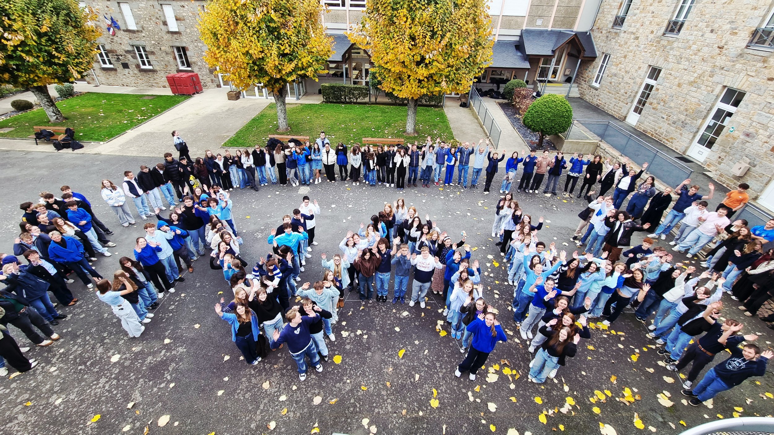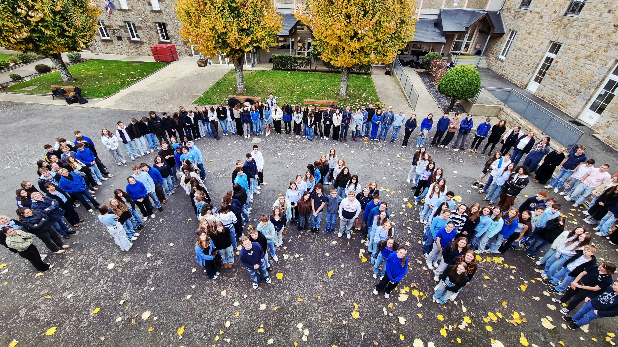 À 13h05, l’ensemble de la communauté a été invité à venir vêtue de bleu pour une photographie collective dans la cour principale afin d’affirmer visiblement le refus du harcèlement scolaire. Ce temps fort a symbolisé l’unité du lycée et l’engagement commun des élèves et des personnels.