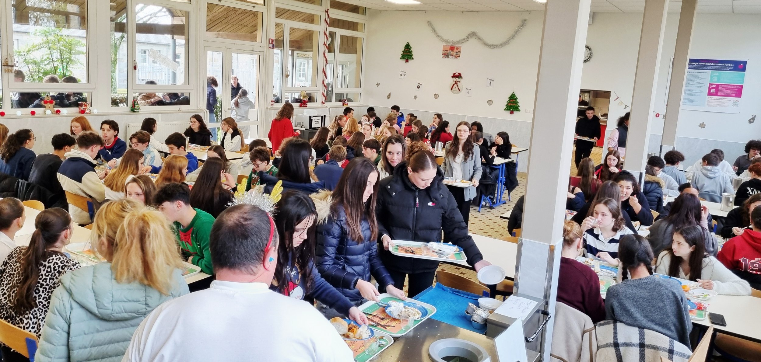 Cette ambiance décontractée s’est prolongée au repas de Noël, préparé avec soin par les agents du lycée, dont les compétences culinaires ont été pleinement appréciées. Au menu : pâté en croûte, poisson, viande en sauce, pommes de terre, sans oublier une farandole de desserts raffinés qui ont fait l’unanimité. Les élèves ont également pu profiter d’une pause méridienne exceptionnelle de 12h à 14h, histoire de savourer pleinement ce moment. Des boissons gazeuses et des bonbons étaient aussi proposés, pour le plus grand bonheur des gourmands. Les internes, eux, ont eu droit dans la semaine à leur propre repas festif.
